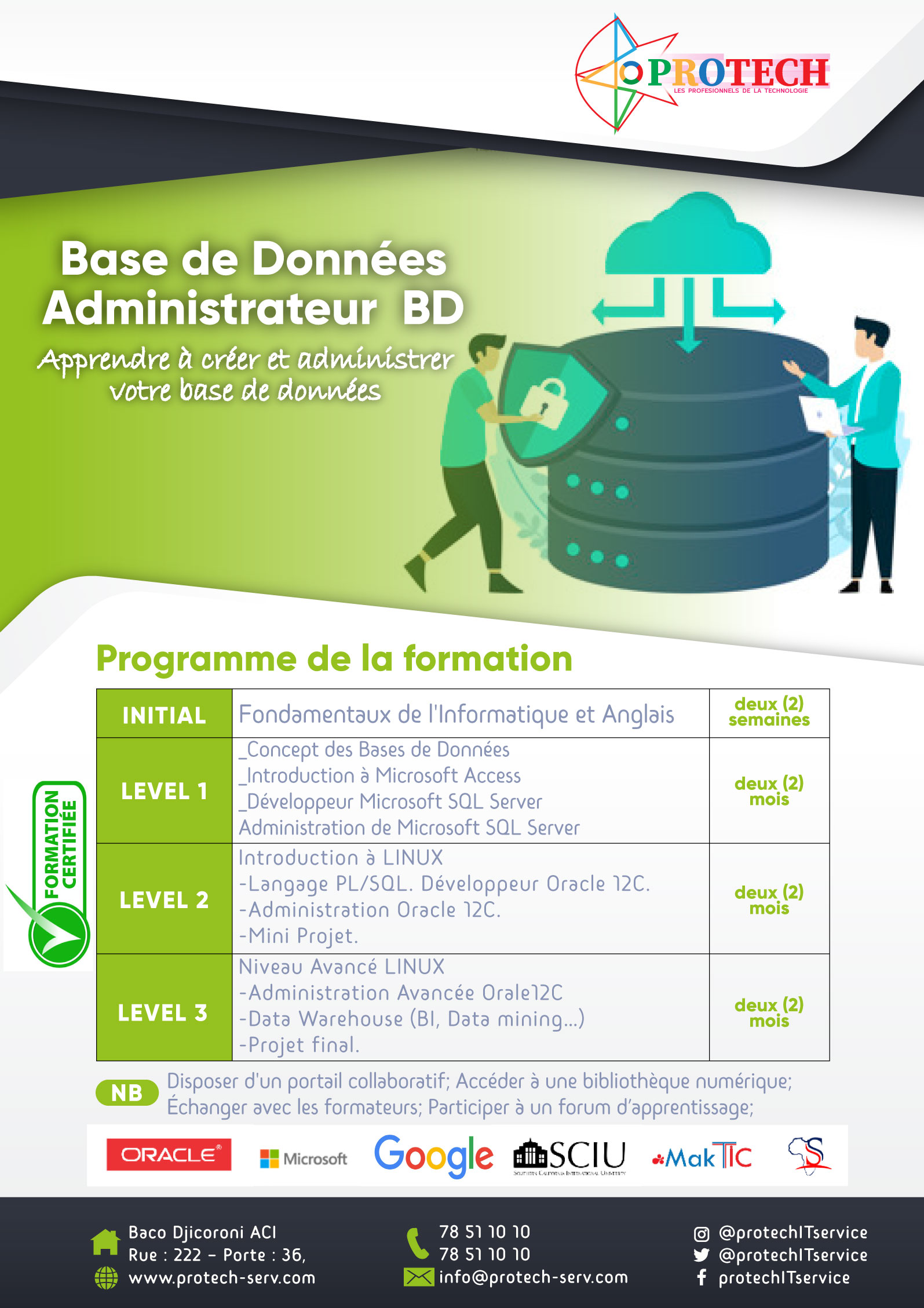 La formation Base de Données, permet aux participants d'acquerir une vision claire de ce qu'est un SGBD et de connaitre les principales solutions du marché. Ils comprendront également l'intérêt de modéliser correctement une base de données pour garantir l'intégrité et les performances, découvriront aussi la puissance du langage SQL pour stocker et manipuler les données sous une forme structurée. Indispensable à toute entreprise manipulant un nombre important de données, un système de gestion de base de données (SGBD) permet de centraliser et sécuriser les données. Le domaine de Base de données est au coeur de la technologie, d'ou un besoin indispensable de l'apprendre.