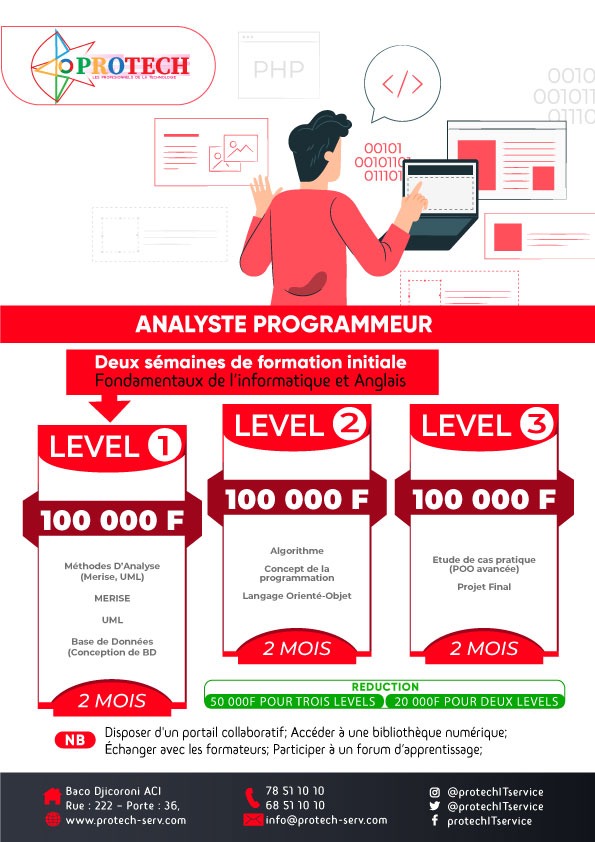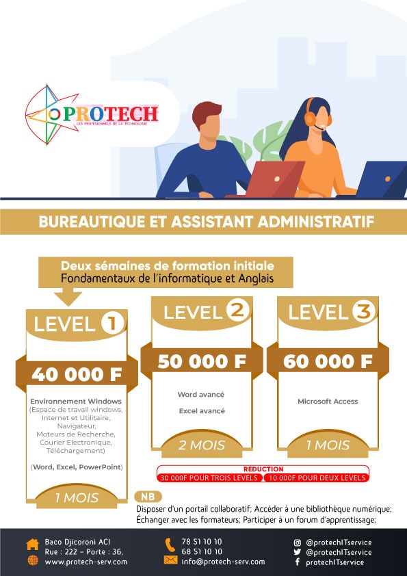 Nous proposons les meilleures formations professionnelles dans le domaine de l'informatique, la comptabilité et l'audit. Nos formations sont orientées sur la pratique afin de préparer les participants à une insertion professionnelle rapide. Nous avons une équipe de formateur ayant plusieurs années d'expérience dans leurs spécialisations respectives.